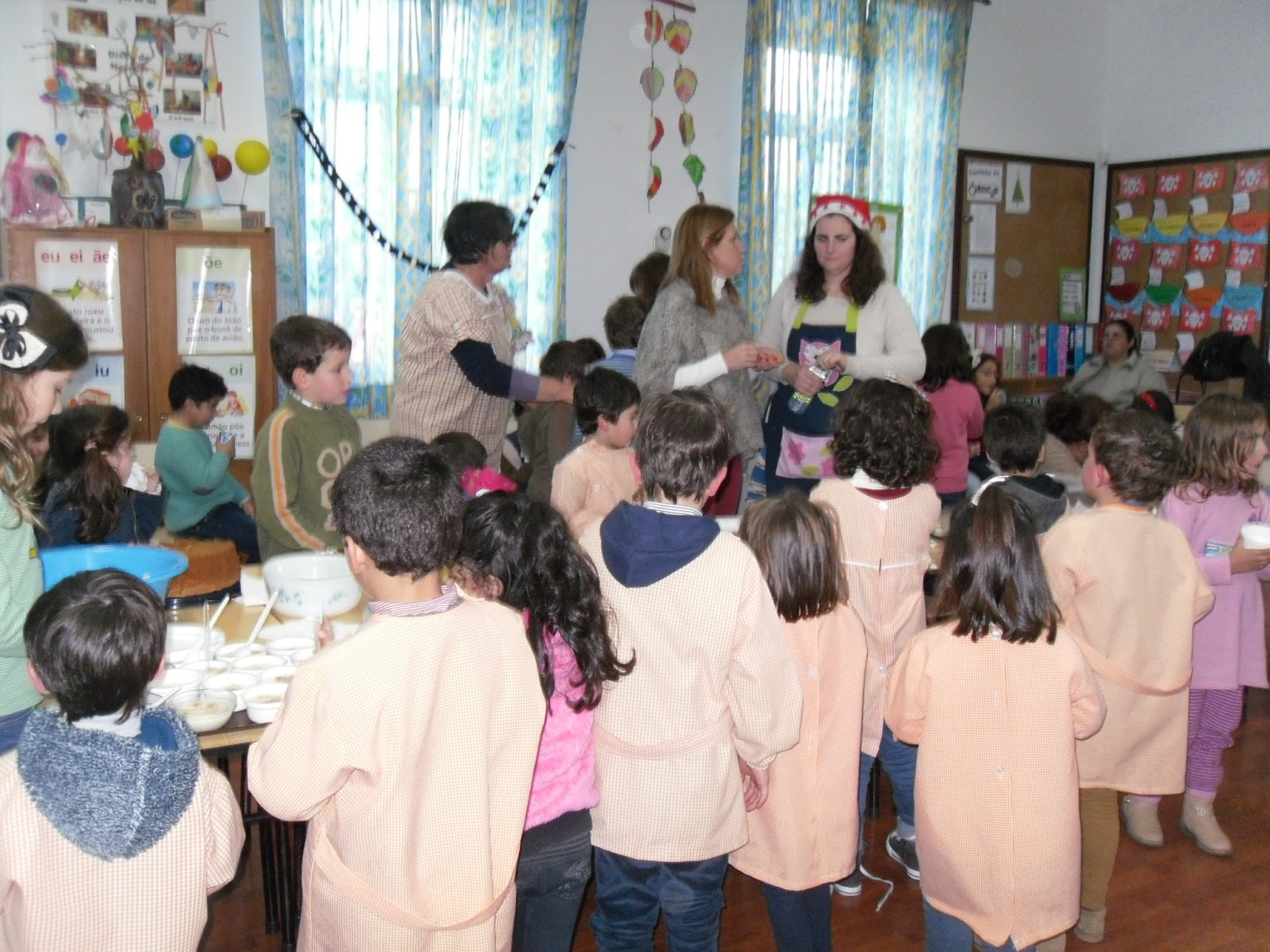 Hoje comemorámos o Natal, com um lanche partilhado. Os pais prepararam um lanche diferente para as crianças.