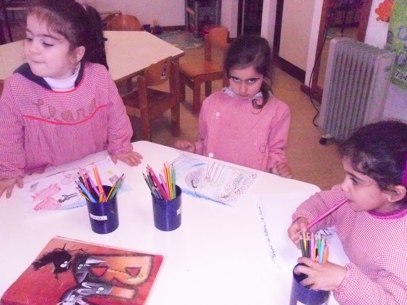 A desenhar a história do Cuquedo depois de eu ter contado.