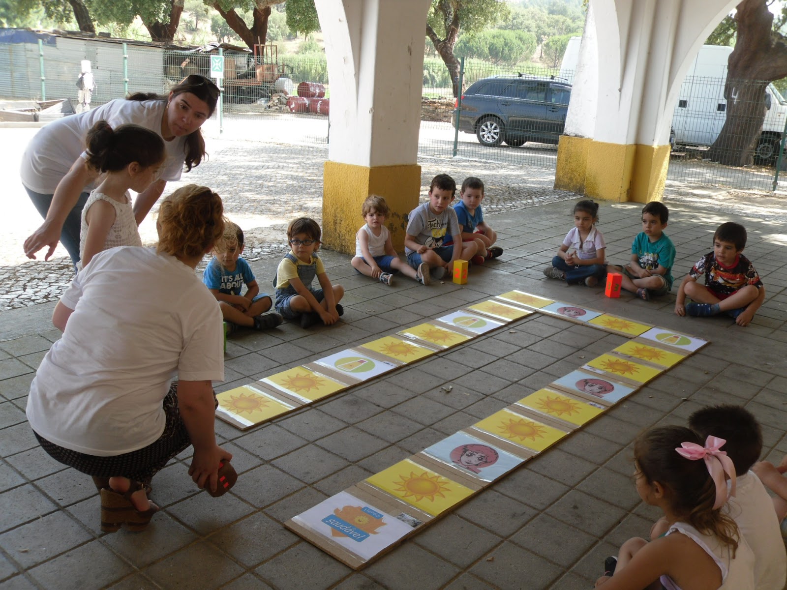 As enfermeiras Cristina e Marisa estiveram no nosso jardim para sensibilizar as crianças para a necessidade de usar o protetor solar.
