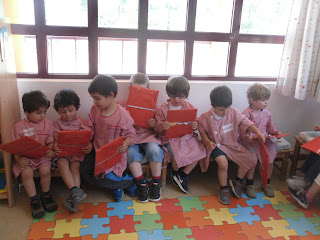 Realizamos muitas atividades ao longo do dia: ouvimos histórias,ouvimos canções, jogámos ( jogo das cadeiras)...